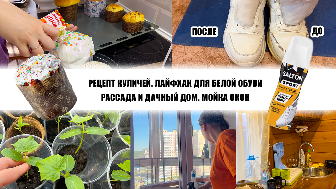 РЕЦЕПТ КУЛИЧЕЙ. ЛАЙФХАК ДЛЯ БЕЛОЙ ОБУВИ. РАССАДА И ДАЧНЫЙ ДОМ. МОЙКА ОКОН