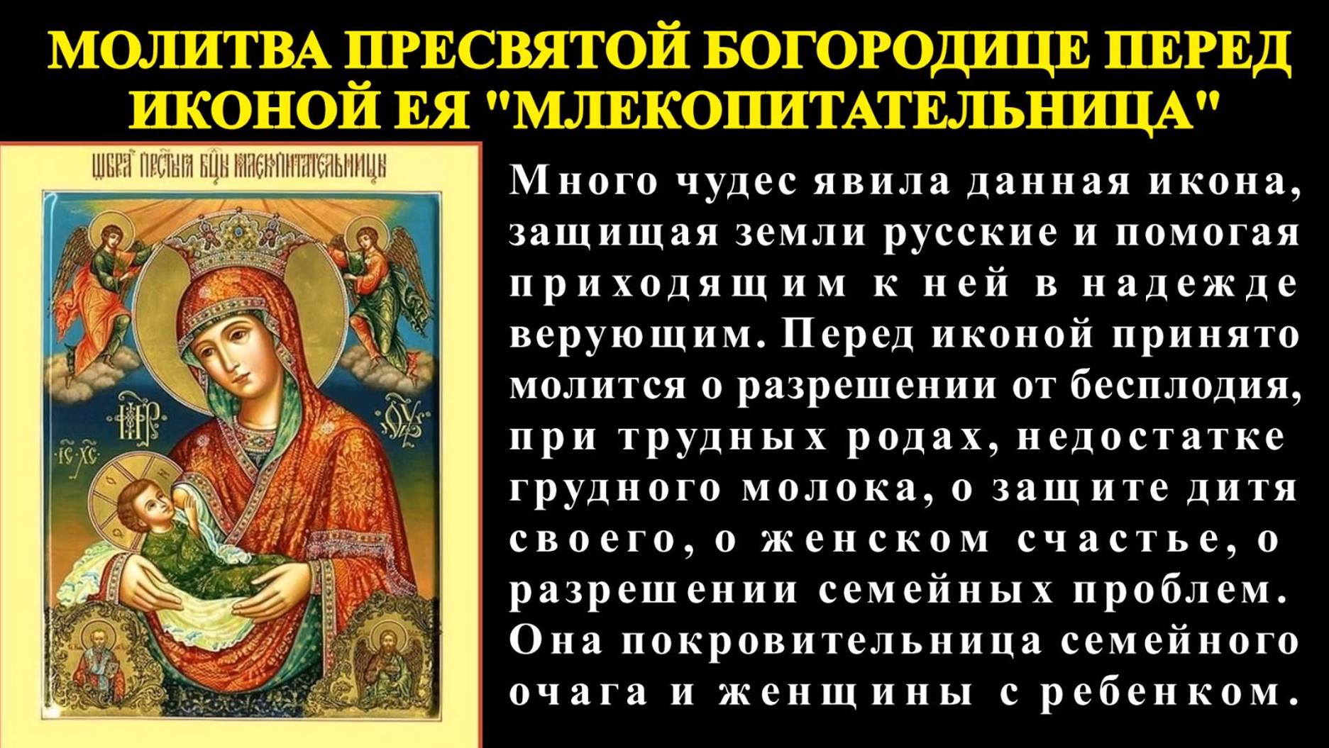 Молитва Пресвятой Богородице перед иконой Ея "Млекопитательница".