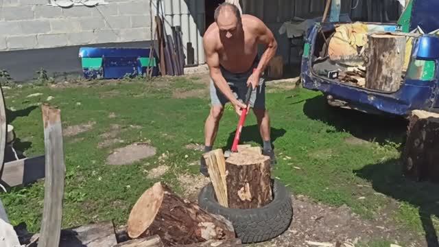Сельские будни. Колю дрова - накачиваю мышцы