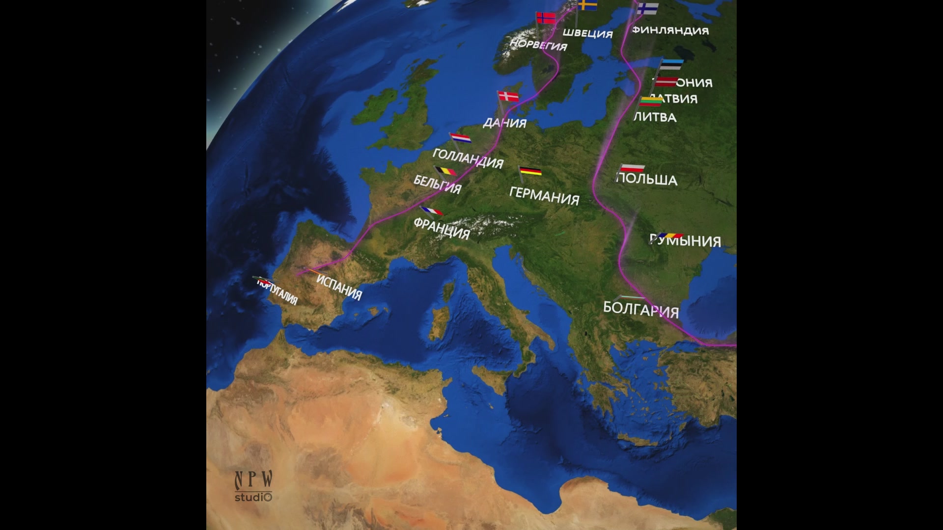 Анимация Земли и трека проложенного через весь мир