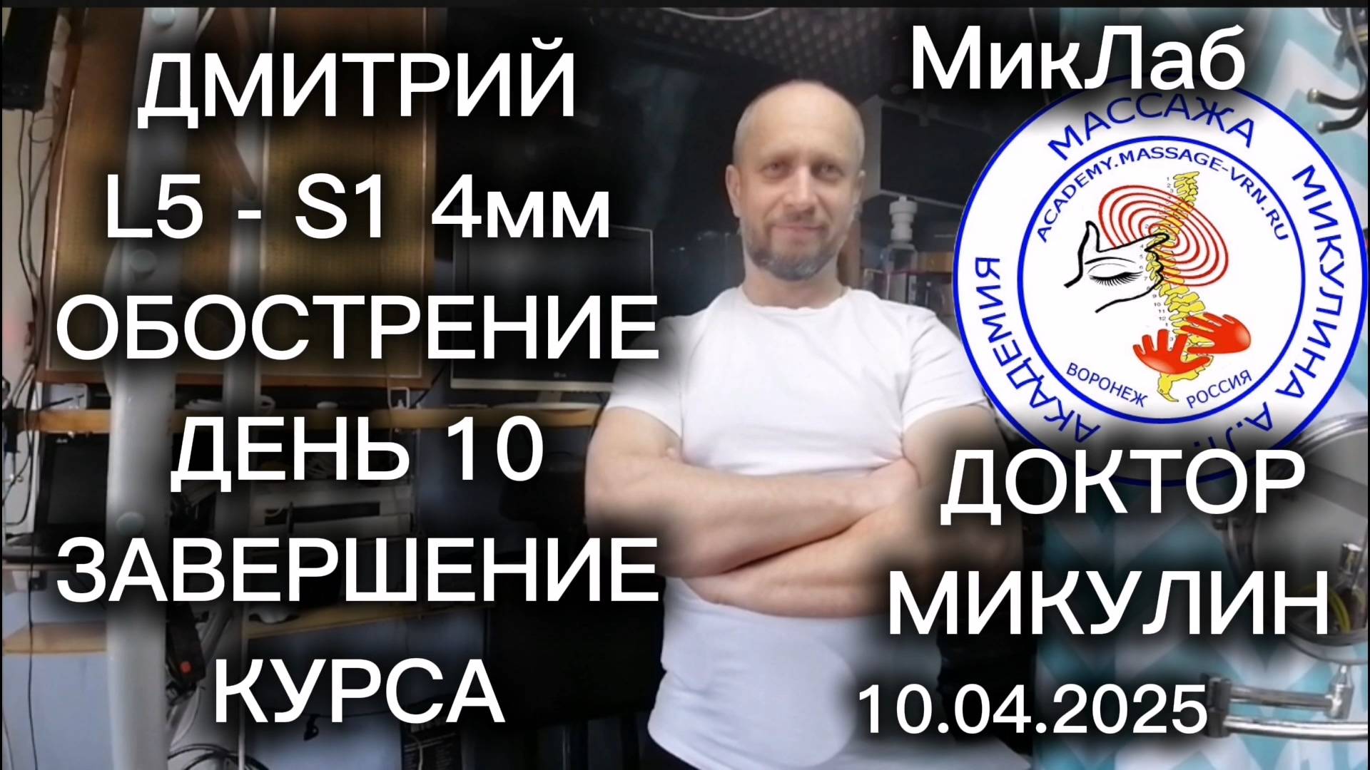Дмитрий. L5-S1 4 мм. Обострение. День 10. Завершение курса. Доктор Микулин. 10.04.2025. МикЛаб