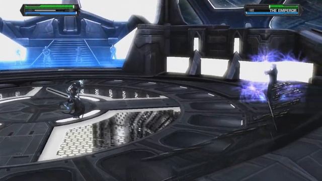 My gameplay video from Star Wars The Force Unleashed. This is the light side ending. I am fighting the sith lord Darth Sidious in order to save my companions. I still used the dark side costume and lightsaber. He is exteremly hard to defeat so I didn't even think about playing on impossible difficulty. This is either normal difficulty or easy difficulty I am not sure. This is the light side ending for Star Wars The Force Unleashed. This is probably what happened in reality if those were real events but it is almost certain that they are not. My enemy is using only force to defeat me.