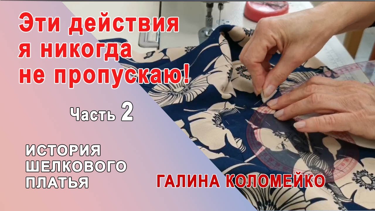 Я тоже люблю смотреть видео, где быстро мелькают ножницы и бодро стучит машинка! Раз - отрезали, Два - скололи, Три - стачали швы. ПЛАТЬЕ ЗА ПОЛЧАСА! Ой, лукавите ))) Мой совет, пусть будет не так быстро, зато точно и аккуратно! Осноровка - та операция, которую я выполняю всегда. Очень аккуратно. Лучше воспользоваться портновским лекалом. Все срезы уравняли, сделали красивыми. Мне нравится сам процесс шитья! На практике все это не так и долго. Просто нужен навык. Теперь наше платье готово к обработке. 00:00 Начинаем осноровку. 00:08 Перегибаем изделие по середине 00:20 Уравниваем и скалываем обрезные края 00:30 Скалываем плечевые швы 01:00 Выкладываем и скалываем горловину полочки 02:00 Берем в руки лекало 03:00 Теперь возьмемся за ножницы 03:50 Оформляем горловину 04:30 Почему мне не нравится этот уголок? 05:20 Косая бейка из органзы пригодится для обработки 05:32 Осноравливаем линию низа. Вот такую осноровку я делаю для каждого изделия. И Вам рекомендую! Всегда Ваша, Галина Коломейко