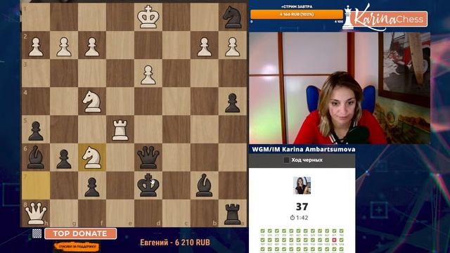 Титульный вторник на chess.com 11 туров 3+1 Поддержать канал: https://www.donationalerts.com/r/karinachess1 Обучающее сообщество и доступ к бонусам: https://boosty.to/karinachess Подписаться на мой канал: https://www.youtube.com/channel/UChor8u_hhgrjX2lt0QLzZHA?sub_confirmation=1 Курс "Пешечные структуры" https://vk.com/@karinachessclub-peshechnye-struktury Курс "Принципы атаки и защиты в шахматах" https://vk.com/@karinachessclub-attackdefence Курс "Принципы и приёмы игры в эндшпиле" https://vk.com/@karinachessclub-principlesofendgame Рестрим: https://www.twitch.tv/karinachess1 Рада приветствовать Вас на канале женского международного гроссмейстера, международного мастера Карины Амбарцумовой! Я - профессиональная шахматистка и тренер. Здесь вы сможете найти обучающие видеоуроки по шахматам, комментарии турниров, стримы моей игры в блиц шахматы. Подписывайтесь на мои странички в соц.сетях: ВКонтакте: https://vk.com/karinachessclub Telegram: https://t.me/karinachess Instagram: https://www.instagram.com/1karinala7/ Twitch: https://www.twitch.tv/karinachess1 Почта для связи: karinachess@mail.ru Мой сайт: http://chesscoach.ru/ #шахматы #КаринаАмбарцумова #стримшахмат #шахматыблиц