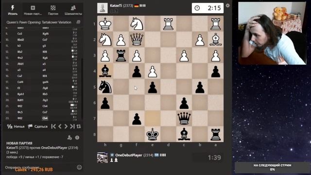 Друзья, всем привет. Партия со стрима, представляю вашему вниманию. Шахматы. Блиц 3+0 на chess.com. Если интересно, - подписывайтесь на канал, ставьте лайки, оставляйте комментарии. Поддержка через: DonationAlerts: https://www.donationalerts.com/r/onedebutplayer Бусти: https://boosty.to/onedebutplayer/donate Donatepay: https://new.donatepay.ru/@1272445