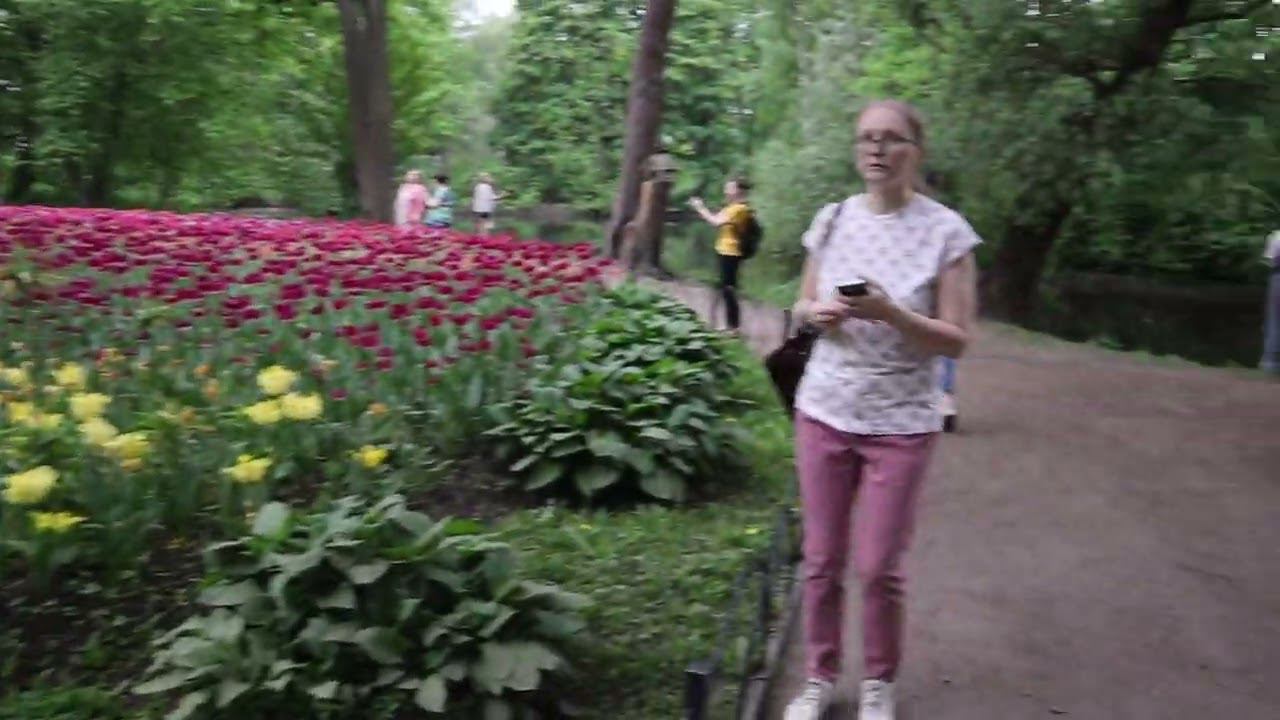 Пришли на Елагин под конец цветения тюльпанов. Раскаты грома и Лахта-центр. Вторник, 28 мая 2024 г.