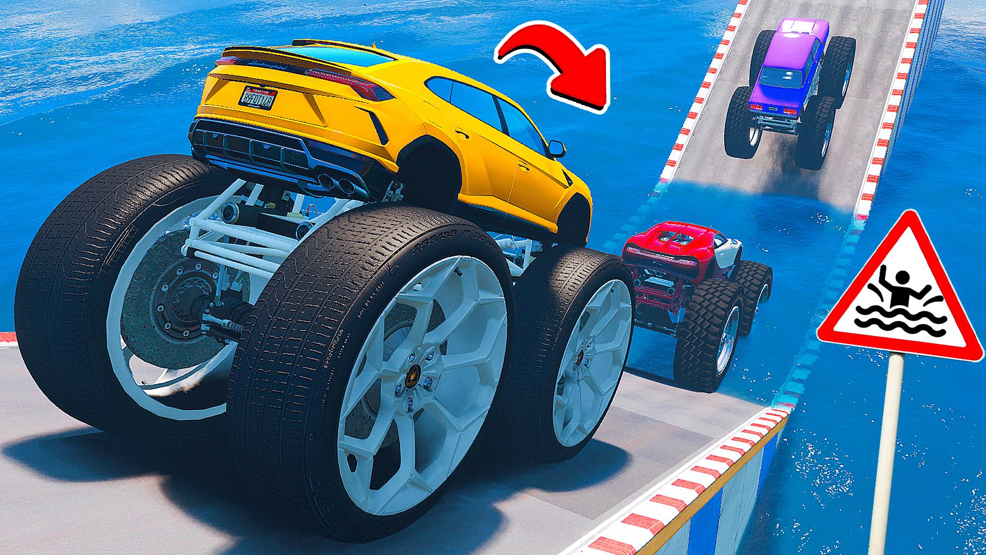 СМОГУТ ЛИ ГИГАНТСКИЕ МАШИНЫ ПРОЕХАТЬ БОЛЬШУЮ ЛУЖУ В ГТА 5 МОДЫ - ЭКСПЕРИМЕНТЫ в GTA 5 MODS
