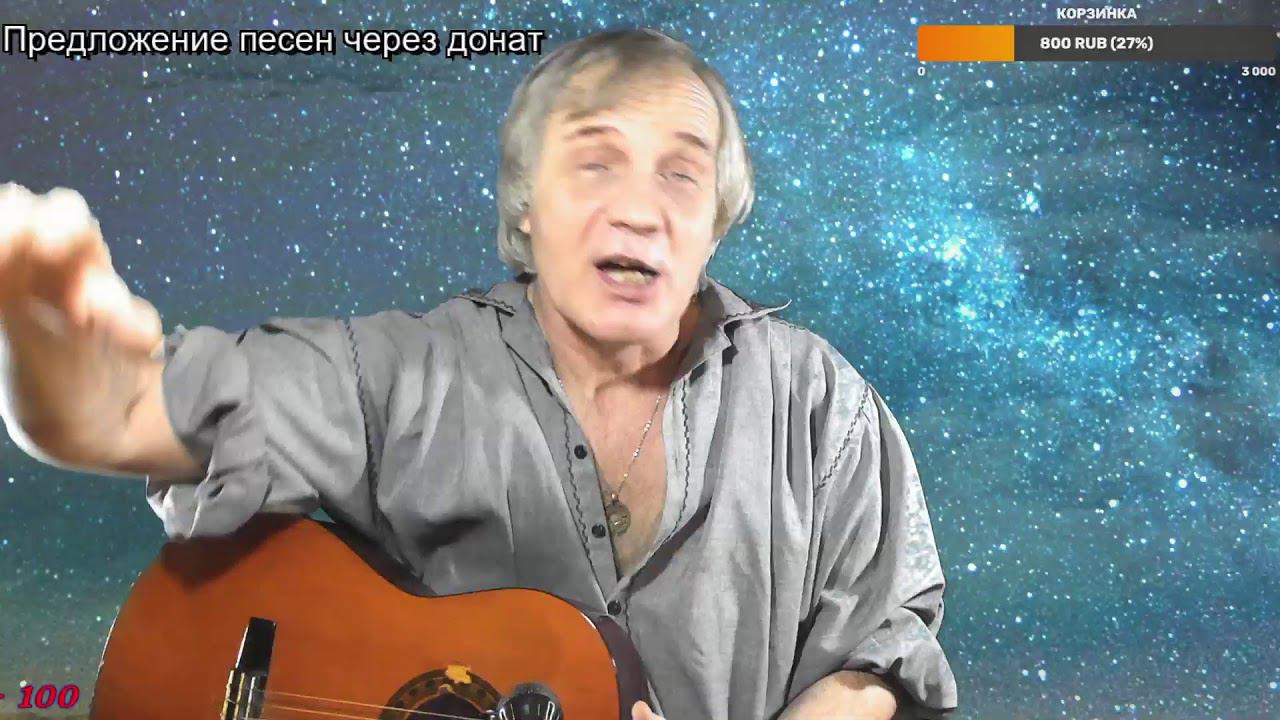 https://www.donationalerts.com/r/zardan10 Корзинка (Донат) Карта жены сбербанк 6390 0277 9013 7108 45 https://www.instagram.com/pesni_vvs/ Мой новый инстаграм где будем много интересного.... Описание. Каждый вечер для вас в атмосфере кухонных посиделок с друзьями звучат хиты, популярные и редкие песни Владимира Высоцкого, неизвестные стихотворения, истории из его жизни, встреч со зрителями, о театре, фильмах, песнях. Поднимаются темы судьбы, любви, войны в песнях Высоцкого, его лирика о горах. Много юмора, ярких шуток, смеха, анекдотов. Легко, весело, свободно, уютно. Звучит голос которому веришь и музыка гитары цепляет. Смешные песни, грустные песни, песни о войне, песни о любви. Весь мир театр - а люди. Бенефис, день рождения и авторские песни. ПРАВИЛА ЧАТА : 1 CAPS Недопустим (Бан 5 мин)(Исключения выражение искреннего восторга) 2 Оскорбления друг друга и автора канала Недопустимы Бан 3 Матерится в чате Перманентный бан Группа ВКонтакте https://vk.com/andreybarbashov #Высоцкий#Песниподгитару#СтримпесниВысоцкого Список исполненного: 1. Ночь прошла будто прошла боль... 2. Давайте я спою вам в подражанье радиолам... 3. Кони привередливые 4. Здравствуйте, наши добрые зрители... 5. Охота на волков 6. Камнем грусть висит на мне... 7. В сон мне жёлтые огни... 8. Як - истребитель 9. Скалолазка 10. Я не люблю