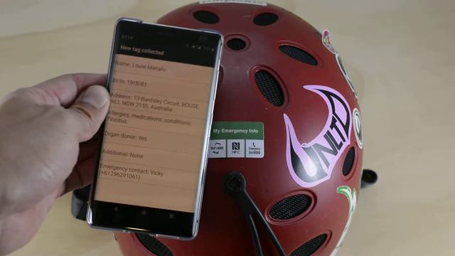 This short clip show how an NFC tag can provide your emergency information. All it takes is a tap. The NFC tag displays your important emergency information. When your NFC 'My Emergency Info' is tapped, it shows* this information on an emergency responder smartphone display. Currently this information is provided in a plain text format. This information includes your name, date of birth, home address, allergies, medications, health conditions, if you're an organ donor, any other information and emergency next of kin contact. Our NFC My Emergency Info sticker is simple in design (designed in house) and durable. It's convenient 40x25mm size makes it ideal to stick on many types helmets or other objects where your emergency info maybe needed. The sticker is made from durable PVC plastic and includes an antimetal layer so it's safe to stick on metal and carbon fiber surfaces. It has a call to action message to interact with it and the 000 emergency number. This special NFC sticker may come useful, if things go pear shape. It's a cheap form of insurance. Visiting our website for more information. *Android users with an NFC feature on their smartphone are able to show the emergency info. Apple users need an app to show the same information. User interface may differ between smartphone models. Demo Phone: Nokia Sirocco Platform: Android