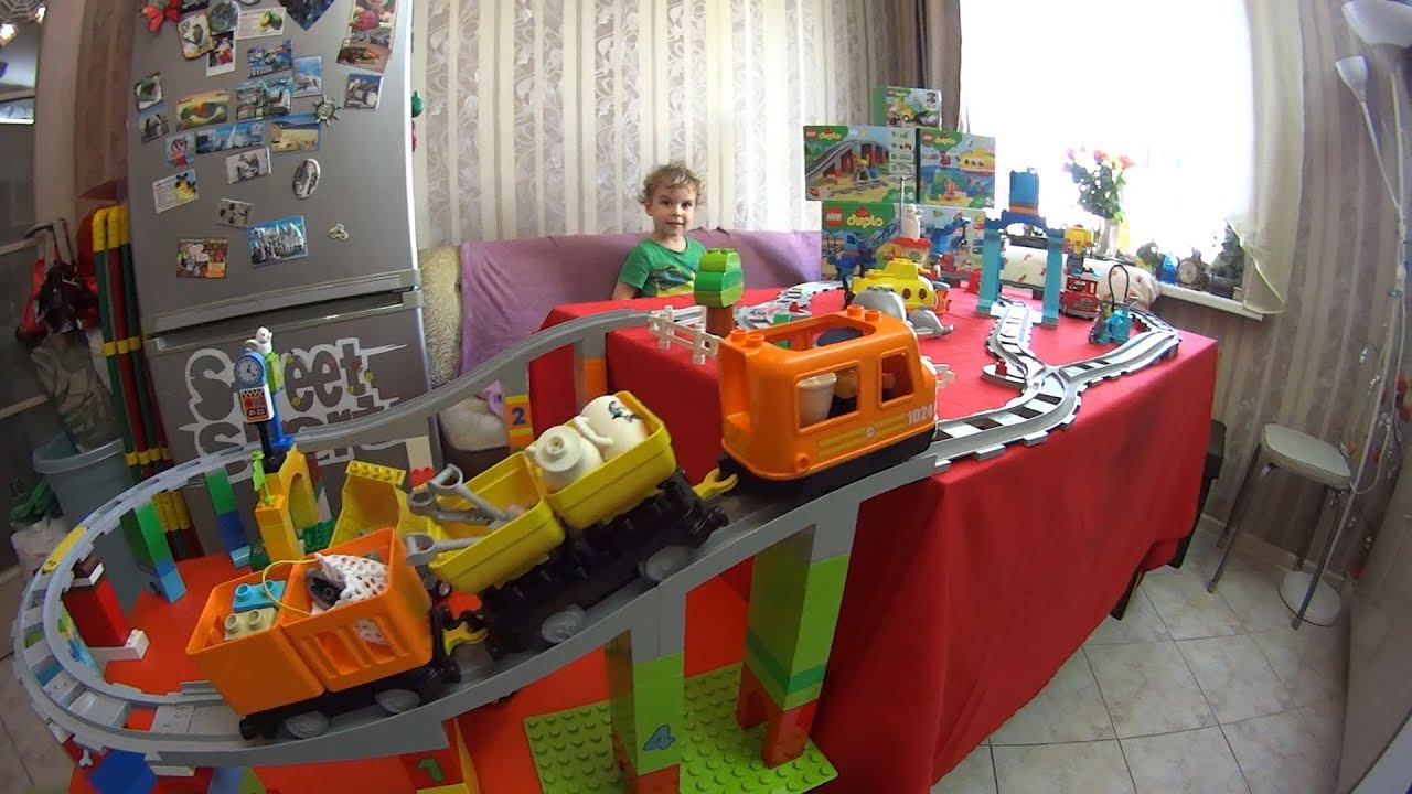 В одном из предыдущих видео с Дня Рождения Матвея мы делали обзор на крутую железную дорогу LEGO DUPLO и помимо основного набора нам подарили ещё несколько небольших наборов лего с железнодорожным мостом, подводной лодкой и строительной техникой. И мы решили разнообразить наши железнодорожные приключения новыми постройками, в частности небольшой стройкой и конечно большим поворотным лего мостом на опорах и с переездом с большого стола на маленький и обратно. Нам было весело и интересно играть в эти супер крутые наборы Лего Дупло, мы считаем, что это одна из самых достойных игрушек как для ребят, так и для взрослых, ведь покупая игрушку такого формата, это подразумевает под собой совместную игру всей семьёй. Игрушки с настолько продуманным игровым процессом не оставят равнодушными даже самых непринуждённых родителей и подарят семьям драгоценные минуты единения.