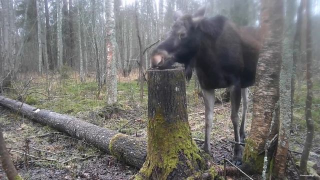 Любопытная белка и лось на солонце. Ленинградская область. Фотоохота.