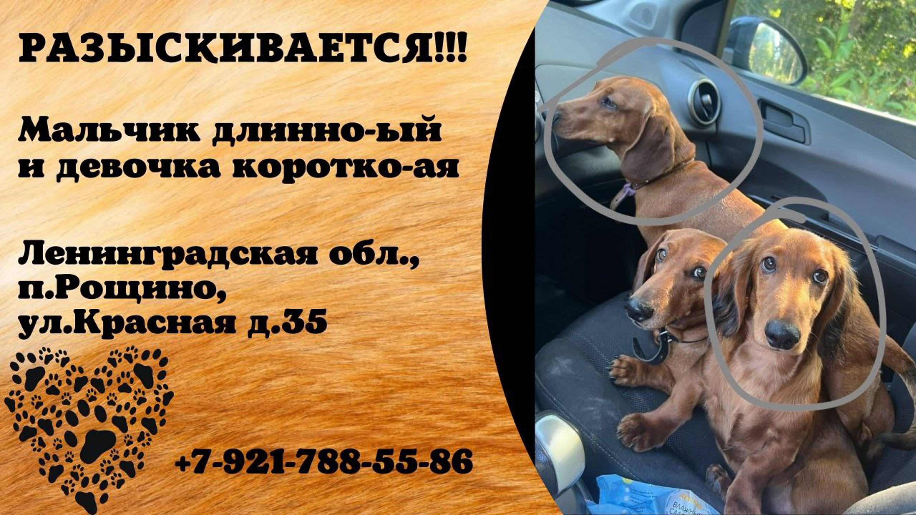 Пропали собаки! Мальчик длинношерстный и девочка короткошерстная. Ленинградская обл, п. Рощино
