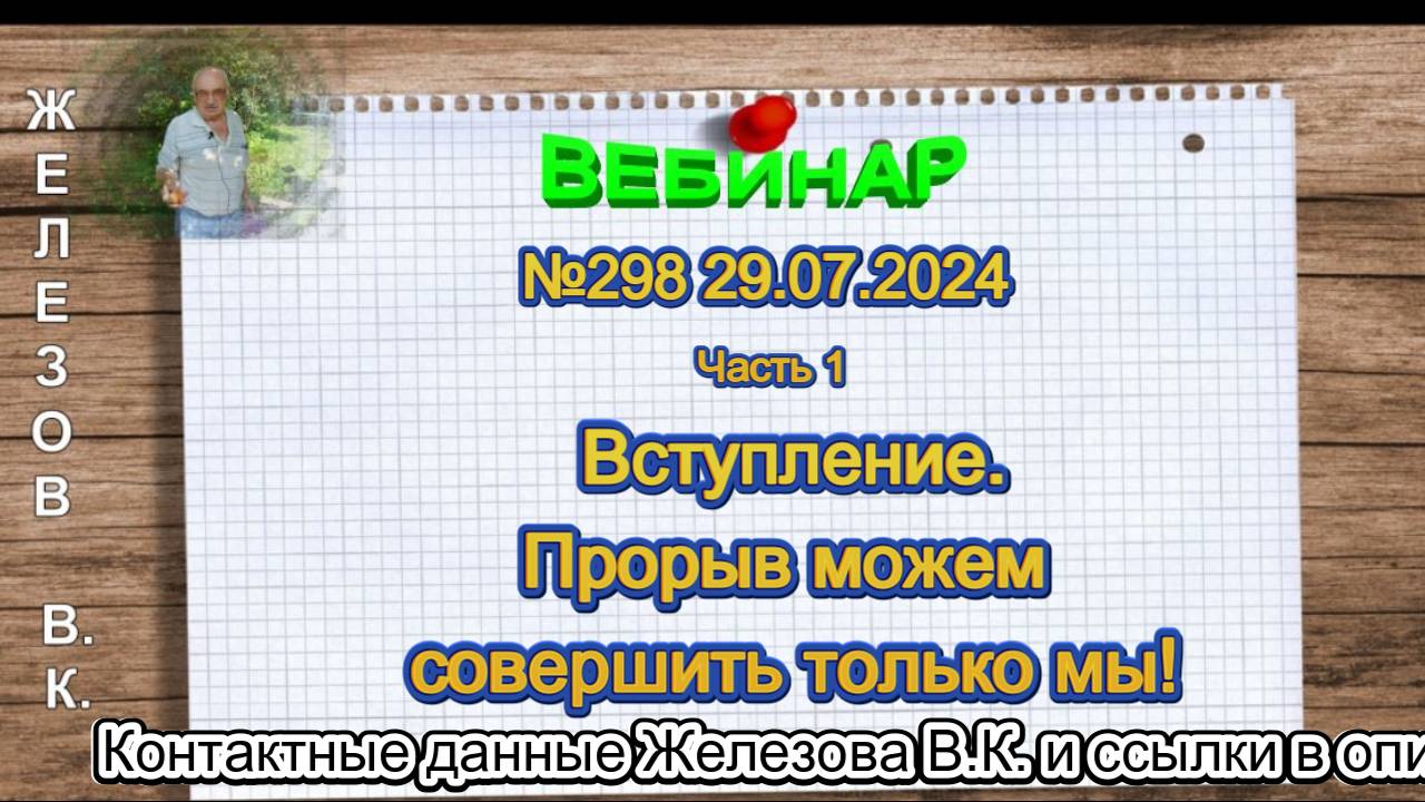 Железов Валерий. Вебинар 298. ч.1. Вступление. Прорыв можем совершить только мы!