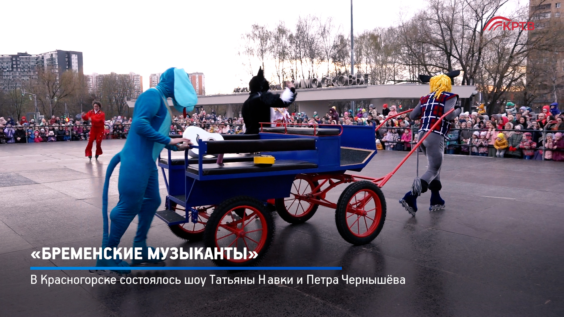 Спектакль на роликах «Бременские музыканты» показали в Красногорске, на главной площади города. Постановщиками шоу стали известные фигуристы Татьяна Навка и Пётр Чернышёв.