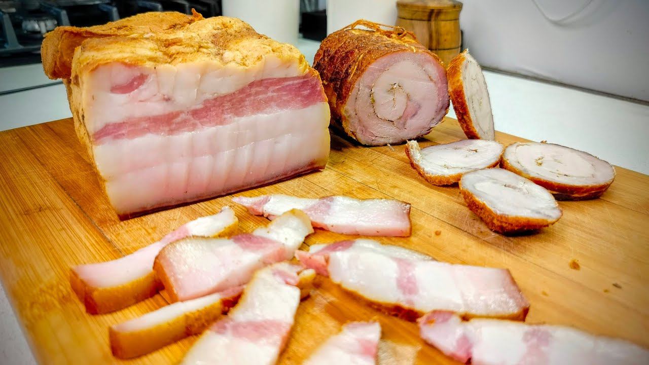 Такие отрубы покупаю регулярно, там есть что срезать и приготовить. Отрубы целиком гораздо дешевле чем по раздельности. И так на сало: Соль с перцем чеснок Чеснок нарезаю слайсами и в сало куда же сало без чеснока . Способ засолки в пакете ещё дед мой так солил каждый кусок сала паковал и на базаре продавал, говорил так сутки перед базаром солить, потом досолиться))) Но я делаю навярняка , термообработка ускоряет все процессы, первая так называемая варка до 80-87 градусов не более. Потом сушка в духовке, ну а в коптильне это уже доводка. Мясной рулет делаю по принципу колбасы, колбасный аромат придаст мускатный орех, остроту и терпкость древесный перец, соль и розмарин . Сначала обвязываю рулет шпагатом далее одеваю чулок, чулок создаст и будет держать форму, а в коптильне он уже ненужен поэтому останется только шпагат. #вкусныйрецепт #рецептколбасы #рецептмясногорулета #сало #мёд #саловкоптильне #коптильня Музыка: Wander Музыкант: @iksonmusic