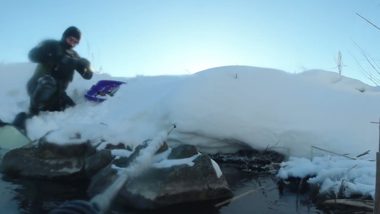 Февраль 2024. Эту охоту можно назвать тренировкой в реальных условиях. Множество лёжек, продолжительный путь к водоёму и немного некрупной рыбы на сковородку.