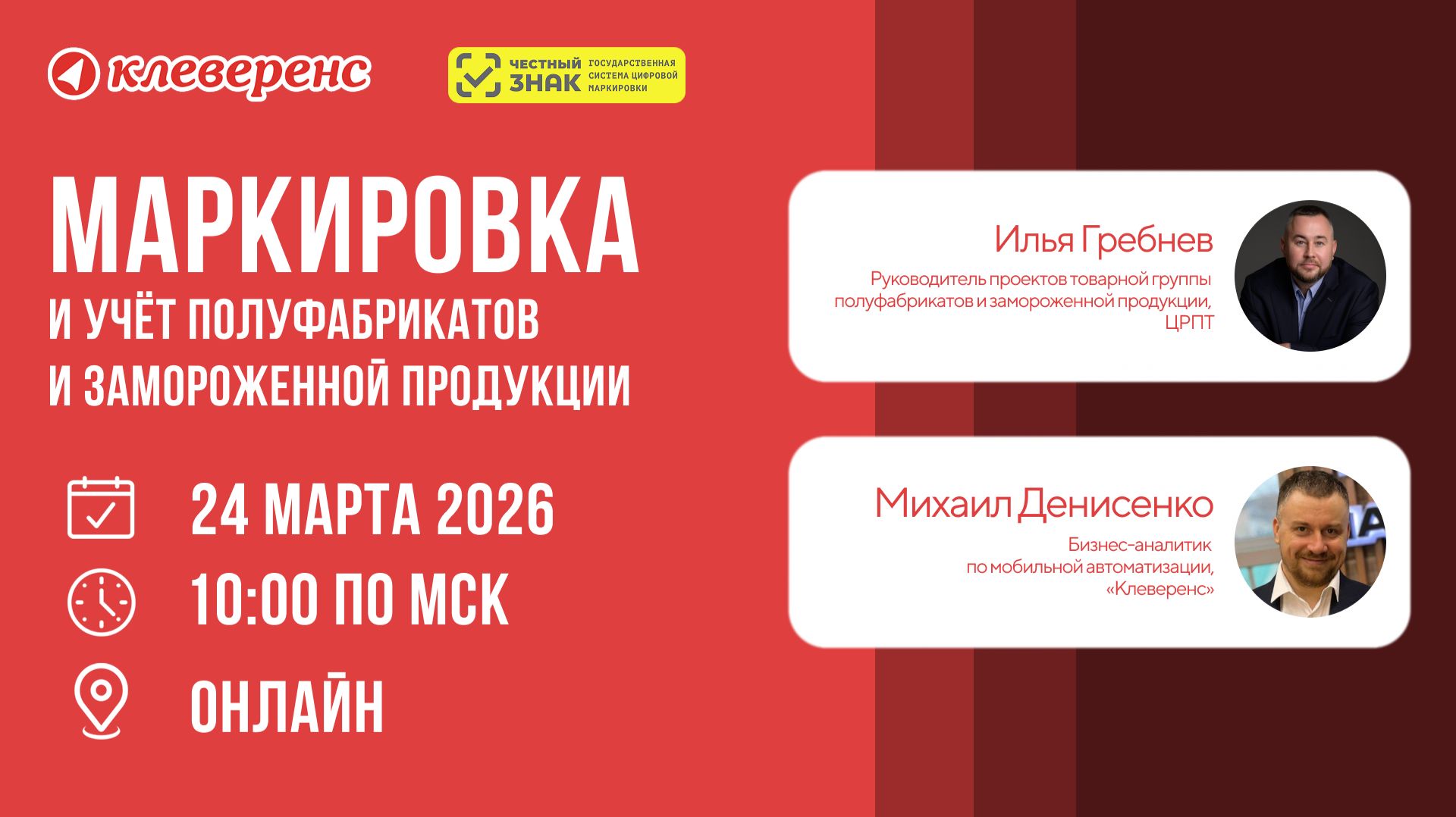 Решение «Фабрика 15» - https://clv.moscow/dk1d1 Чат товарной группы в Telegram - https://t.me/markirovka_polufabrikaty_zamoroz Чат товарной группы в MAX - https://max.ru/join/Tdt-ZuyxCtdHtd9E0H4VfJViSJ0k7i422GwYsXDGXv4 Эксперимент по маркировке «заморозки» продлится до 31 августа 2026 года. Но рынок всё ещё отмечает, что коды на упаковке теряют читаемость из-за конденсата, а при отгрузке товаров на маркетплейс оригинальная этикетка заклеивается логотипом площадки. Провели совместный вебинар Клеверенса и ЦРПТ, где мы разобрали всё, что важно знать о маркировке полуфабрикатов и замороженной продукции. В программе: • Перечень товаров и опорные сроки • Общие требования к формированию и нанесению кодов для замороженных продуктов и частые ошибки бизнеса • Технические решения, устраняющие проблемы с читаемостью кодов в условиях низких температур • Необходимый минимум: оборудование, ПО, ЭДО Рассказали, как автоматизировать приёмку, отгрузку и инвентаризацию и упростить работу с DataMatrix, и уделили внимание практическим кейсам и мобильным операциям на производстве, складе и в магазине.