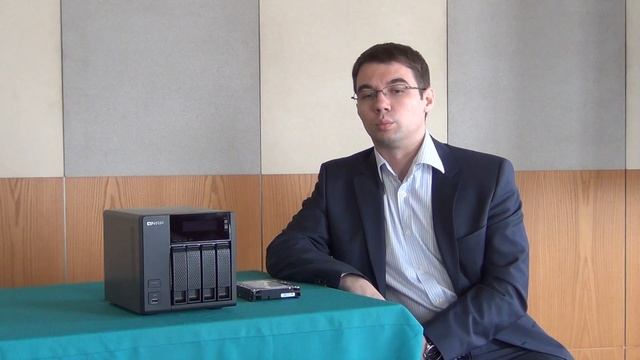 Глава российского представительства компании QNAP - Андрей Васильев - представляет линейку сетевых накопителей NAS.