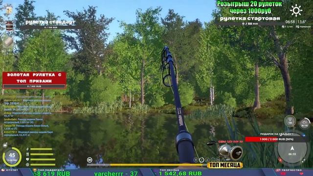 Поддержка донатом https://www.donationalerts.com/r/kalyamba11 Альтернативный донат https://new.donatepay.ru/@1032463 Если стрим лагает,смотри стрим на трово https://trovo.live/s/Kalyamba_na_Ribalke ТОП 1 ДОНАТЕР МЕСЯЦА поддерживающий трансляции получит подарок в виде катушки TAIGA c40 2s Мой ВК - https://vk.com/kalyantv НИК в игре kalyan11 НАШ ДИСКОРД СЕРВЕР https://discord.gg/mSbnTJK8TB Заказ водоема на 1 час - 500р ( весь стрим 2500р ) Модерка на канале 1100р ( каждая следующая на 100р больше) Озвучка доната на 40р,50р,100р,200р,300р,500р,1000р ✅Призы в рулетке "ПРЕМИУМНАЯ" ✔ ЗОЛОТО ✔ ПРЕМ ✔ КАТУШКИ РАПТОР 40, АЗИМУТ 10000, СИЛЬВЕР 80, ТАЙГА с 30 ЮБИЛЕЙНАЯ, ✔ ПАЛКИ ПИЛКЕРНАЯ, ДОНКА МОРСКИЕ, ТОП КАСТИНГ ✔ РОД ПОД, СТУЛЬЯ ✅Призы в рулетке СТАНДАРТ : ✔ катушка "РАПТОР 40" ✔ катушка "АЗИМУТ 10000" ✔ катушка "ТАЙГА С30, С40, С30 (юбилейная)" ✔ катушки 60 для медного ( ЭВИИ, НАТОРЫ, ГОЛДА, и тд) ✔ ПИЛКЕРНОЕ УДИЛИЩЕ КОРОЛЕВА ОКЕАНА ✔ Тяжелый кастинговый спиннинг "Барракуда" ✔ Морское Донное удилище ✔ прем ( 3, 7, 30 дней) ✔ золото ( 1, 3, 5, 10, 20 ,50) ✔ билет на море ( 1, 3, 5 дней) ✔ голд наживка и др. ✅Призы в рулетке "СТАРТОВАЯ" ✔ катушка "silver80" ✔ катушка "БЕЛЫЙ КАЛИБР" ✔ катушка "Черный калибр" ✔ катушка "Протон" ✔ катушка "Нарга 6000" ✔ Набор Фидерист и спинингист ✔ Карповик Фортуна ✔ фидерные удилища ✔ прем, золото, алкашка, наживки и тд P.s Рулетка это не казино, а награда за поддержку стримера. Вечный ТОП ПОДДЕРЖКИ (11.05.2024) 1. Dimon_pokemonchik 119 784 2. Interceptor 75 508 3. Skreb79 71 261 4. une personne 68 619 5. Нарвал77 31 550