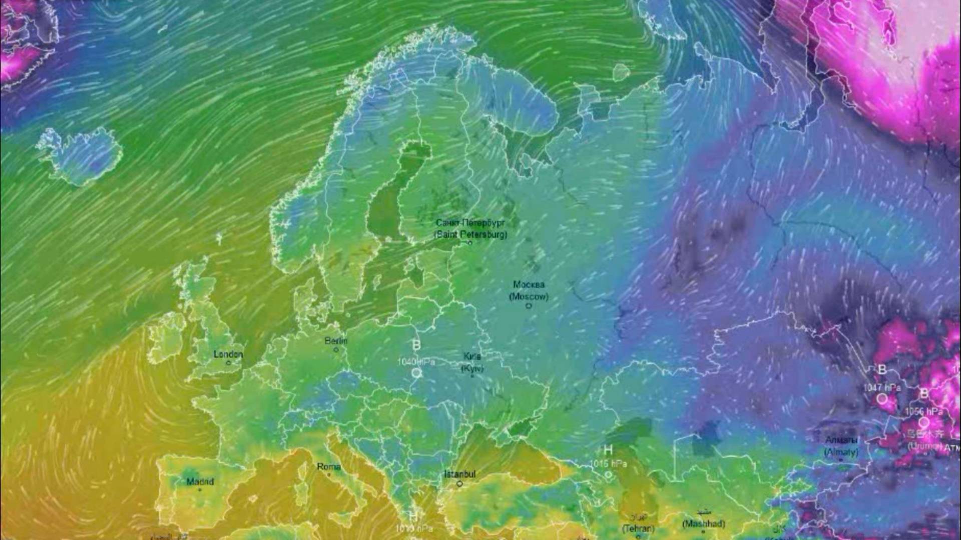 Движение воздушных масс воздуха над Европой и ЕТР за декабрь 2024 года