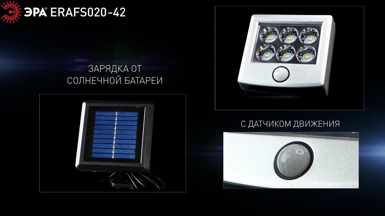 Беспроводной led светильник ERAFS024-07 станет эффектным источником света вашего дома, террасы, беседки, гаража. Фасадный светильник имеет два режима свечения: статический и рабочий. Статический режим начинает функционировать с наступлением ночи. Рабочий, отличающийся повышенной яркостью - при появлении движения в радиусе около 5 м. Подвижная панель позволяет настраивать направление света в соответствии с индивидуальными предпочтениями. Весомое преимущество светодиодного светильника встроенный датчик движения. Свет не будет мешать и просто так освещать пустое пространство. Цветовая температура в 6500 К подарит приятное белое свечение. Алюминиевый корпус обладает повышенной прочностью. Подсветка Вашего пространства может длиться непрерывно в течение 8 часов. Высокая степень защиты от пыли и влаги позволяет оставлять садовый светильник на улице даже во время дождя. Функционирование на солнечной батарее является самым экологичным, энергоемким и бесшумным. Покупайте уличный светильник на солнечной батарее от производителя ЭРА и наслаждайтесь отдыхом! ERAFS024-07 ЭРА Прожектор с датчиком движения c выносной солнечной батареей, 6LED,150lm В онлайн-каталоге ЭРА: https://www.eraworld.ru/catalog/2649636 Купить на Ozon: https://www.ozon.ru/context/detail/id/255145501/ Купить на Wildberries: https://www.wildberries.ru/catalog/10902065/detail.aspx?targetUrl=BP Официальный сайт бренда: https://www.eraworld.ru/ Мы в социальных сетях: Телеграм: https://t.me/eraworldru ВКонтакте: https://vk.com/era.russia Для оптовых покупателей мобильное приложение S3 по ссылке: https://www.s3.ru/ru/news/novosti-kompanii/mobilnoe-prilozhenie-s3-predstavleno-na-vsex-platformax-dlya-skachivaniya_i1521197.html