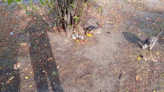 Уличные кошарики кушают и обнимаются, милота! ^^