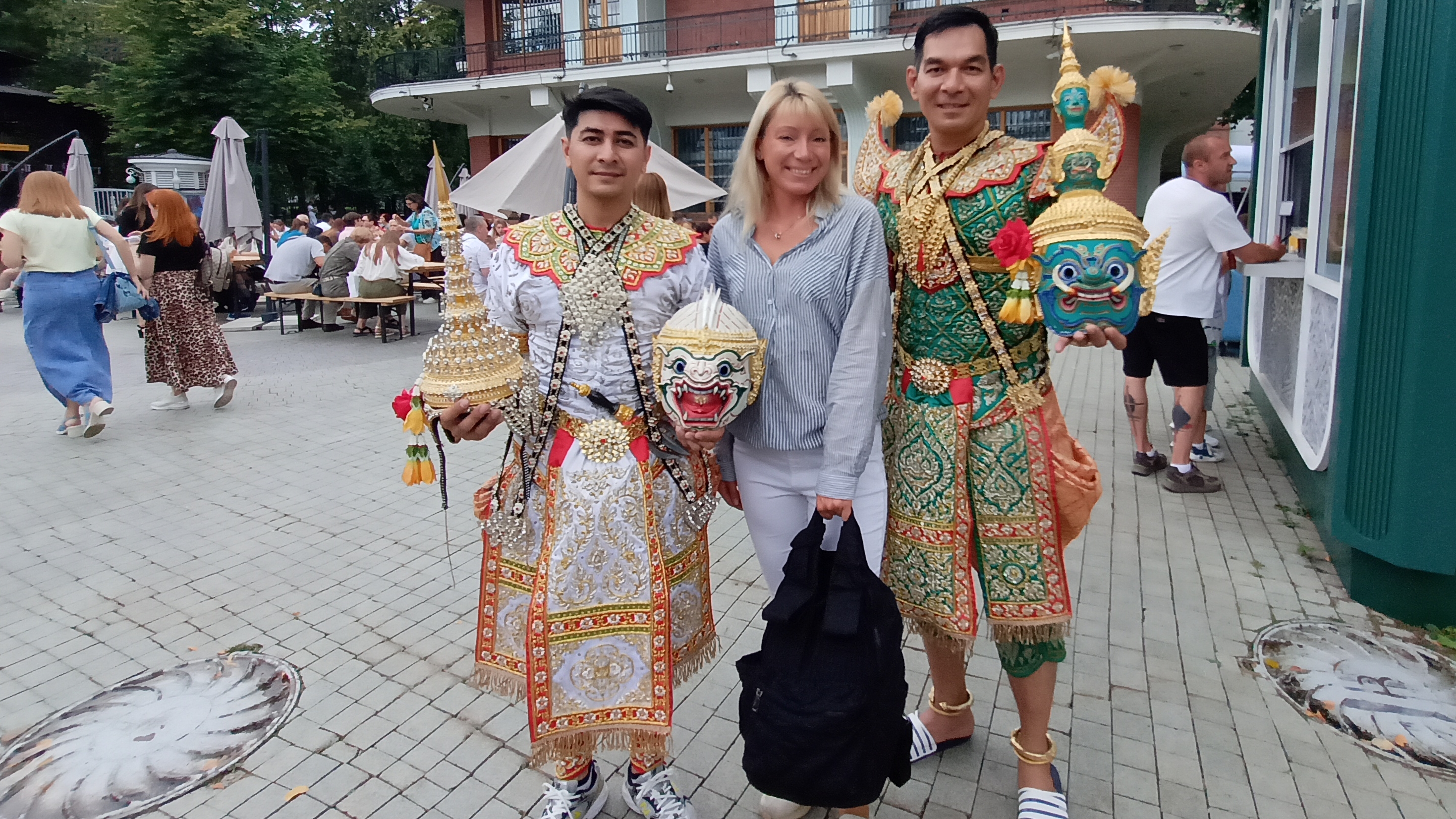Всем добрый вечер. Сегодня хочу поделиться своими впечатлениями и эмоциями после посещения Фестиваля Тайланда в саду "ЭРМИТАЖ" 2025. Год назад мы аналогично были тут. Приехали мы примерно в обед - людей много. Локации с продукцией из Тайланда, Бирмы были представлены и можно было попробовать соусы, кокосовое молоко и пюре манго и тут же приобрести. Мы купили за 100 рублей пюре манго в металлической банке , производство Мьянма ( Бирма). Соусы у нас есть из Тайланда, можно сказать в промышленной таре, а не в "пробирках" или "мензурках". Мне нравится сразу большой объем приобрести и какое-то время не задумываться о покупке. Был мастер-класс по приготовлению тайской еды, но на предыдущий мы опоздали, следующий необходимо было ждать час и стоять в очереди - год назад не было такого ажиотажа. Все места для приема пищи были заняты! Я в шоке... конечно это хорошо, что столько людей с удовольствием посетили это мероприятие. На сцене шли национальные танцы, можно было сделать фото с участниками абсолютно бесплатно. Так же была локация с бесплатным тайским массажем, но когда мы пришли, нам сказали, что по времени сеанс 1,5 часа и запись полная на сегодня и на завтра. Рядом можно было сделать за денежные средства массаж. Детская площадка, где абсолютно бесплатно выдавали инвентарь для спортивных игр. Туалет один на территории, чистый, но конечно очередь и туда. Мы ничего другого не приобрели, так как практически месяц только, как вернулись из этой прекрасной страны. Мне нравится этот фестиваль и он уже не первый год проходит на этой локации. Единственное по украшениям, я не могу сказать, что они именно из Тайланда - я очень люблю разную ювелирку и бижутерию и и вижу, что это не оттуда. Манго по цене было гораздо дороже, чем в магазине. Наверное эту локацию стоит посетить, если необходимо приобрести соусы и кокосовое молоко. Крема, что именно я покупаю в Паттайе - таких тут не было. Зубные пасты мы привезли, зубной порошок не привозят, как и БАДы, что для меня к сожалению минус. Приходиться рассчитывать и привозить в большом количестве - например устричный кальций.. В любом случае площадка интересная, если будет возможность обязательно посетите, а после есть смысл пойти через центр в "Гостиный двор". Сегодня будет последний день - в воскресенье. Всем хорошего настроения. #2025 #россия #тайланд #фестиваль #еда #покупки #эмоции