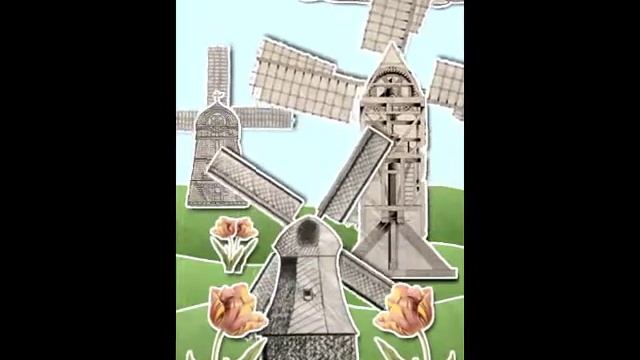 Vintage windmills silently turning, as woodcut clouds go by. Even the tulips gently dance back and forth, and all in a super cute papercraft style. What a peaceful scene... * Spinning windmills! * Swaying tulips! * Drifting clouds!
