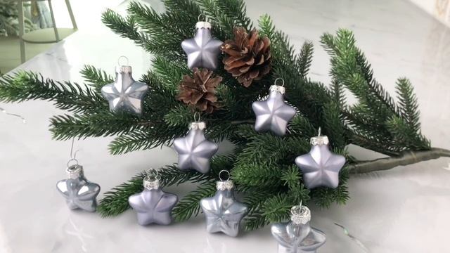 Набор ёлочных игрушек ЗВЁЗДОЧКИ мини, эмалевые и матовые, стекло, дымчатый синий, 45 мм, 012157