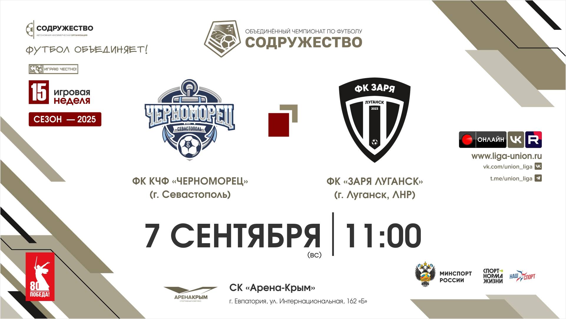 15 неделя (2025) | ФК КЧФ "Черноморец" (Севастополь) - ФК "Заря Луганск" (ЛНР) | 07.09.2025