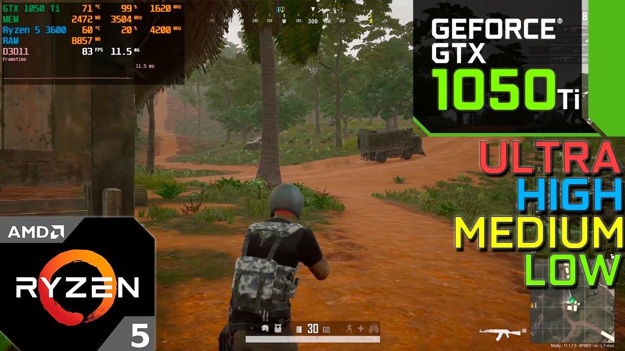 PUBG - Season 11 : GTX 1050 Ti + Ryzen 5 3600 (All Settings)
