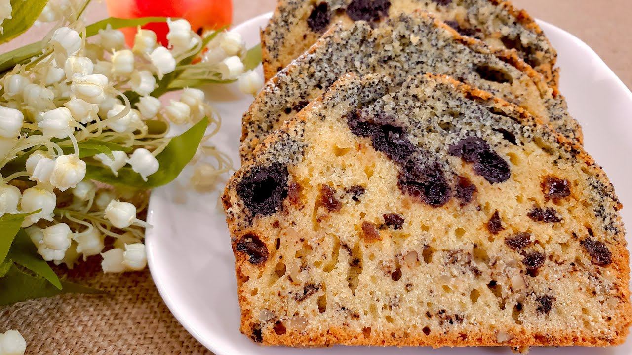 Кекс с изюмом, маком, орехами и вишней -просто, празднично и вкусно