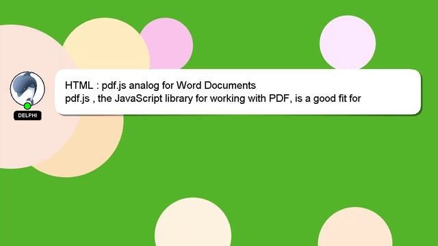 HTML : pdf.js analog for Word Documents To Access My Live Chat Page, On Google, Search for "hows tech developer connect" Here's a secret feature that I promised to disclose to you. This is a YouTube's feature which works on Desktop. First, Make sure the video is currently in playing mode. Then, type the letters 'awesome' on your keyboard as the next step. It will change your youtube progress bar into a flashing rainbow. A little intro about me, Hello everyone, I'm Delphi. I am available to help you find solutions to your inquiries. HTML : pdf.js analog for Word Documents I am available to answer your more detailed queries via comments or chat. If you have additional information or an answer to share, please comment below. Your answer will be recognized and appreciated with a 'heart' from me. HTML pdf.js analog Documents for Word :