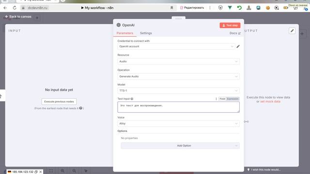n8n. Генерируем аудио OpenAI