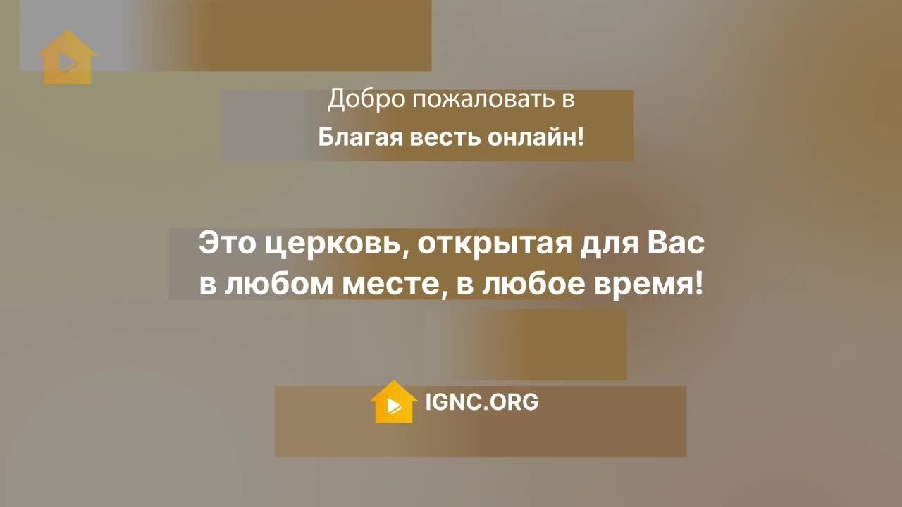 Расписание эфиров: https://ignc.org/live/ Новое: - Божий мир в трудные времена − проповедь Рика Реннера: https://www.youtube.com/watch?v=aLtTJhb7Os0 - Канал «Благая весть Music»: https://www.youtube.com/channel/UCJqSH_3N5Zinit4rEmo8W0A Понравилось видео? Поставьте палец вверх! Пишите Ваши отзывы и комментарии, нам очень важно знать Ваше мнение. Подпишитесь на канал, чтобы не пропустить новые видео известных мировых служителей и слово ободрения! ============================================ Поддержать служение — http://link.ignc.org/WqsKGk ============================================ Церковь «Благая весть онлайн»— http://link.ignc.org/c5ak9P ============================================ Присоединяйтесь к нам в соц.сетях: Telegram: https://t.me/blagayavestonline ВКонтакте: https://vk.com/ignchurch Одноклассники: https://ok.ru/ignchurch Яндекс.Дзен: https://zen.yandex.ru/id/6219fe7b9c9782104d27222f ============================================ Местная религиозная организация Церковь христиан веры евангельской «Благая весть», ОГРН 1037739247996.