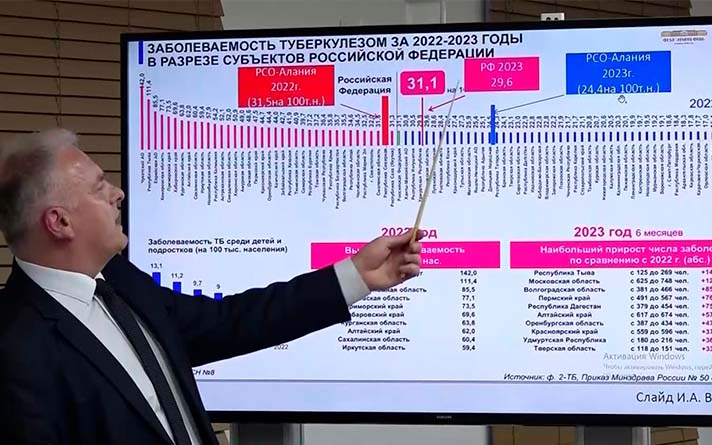 В Северной Осетии наблюдается снижение заболеваемости туберкулезом. За прошлый год данные заболеваемости в республике впервые за всю историю фтизиатрии стали ниже средней цифры по России. Об этом сообщил министр здравоохранения Сослан Тебиев. Это результат эффективной работы над решением проблемы. Благодаря совместным федеральным и республиканским усилиям, в регионе заработал новый противотуберкулезный комплекс, который отвечает всем требованиям, исключает перекрестное внутрибольничное заражение больных разными формами. На совещании также обсудили меры по борьбе с распространением ВИЧ-инфекции. За 5 месяцев этого года показатель заболеваемости уменьшился. Специалисты центра регулярно проводят лекции и встречи с молодежью в образовательных и других учреждениях – к этой работе активно привлекают волонтеров.