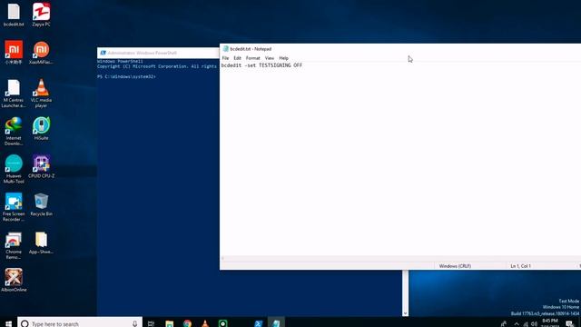 Window 10 test mode off