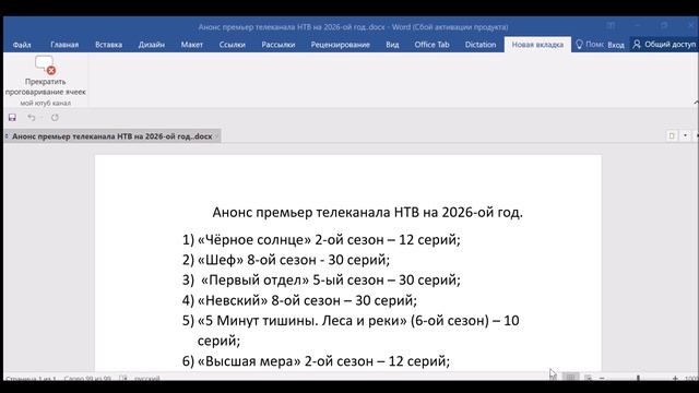 Анонс премьер телеканала НТВ на 2026-ой год.
