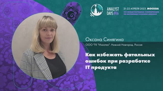 Analyst Days 16 — Оксана Синягина, Как избежать фатальных ошибок при разработке IT продукта