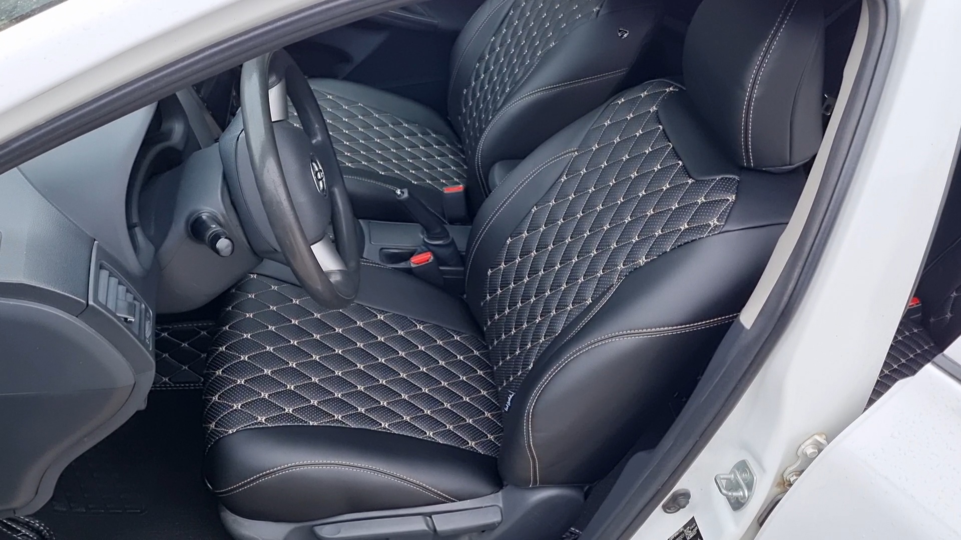 Чехлы из экокожи Тойота Королла Е150 - Стандарт с беж ниткой