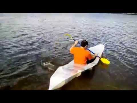 пробный заплыв на самодельной байдарке