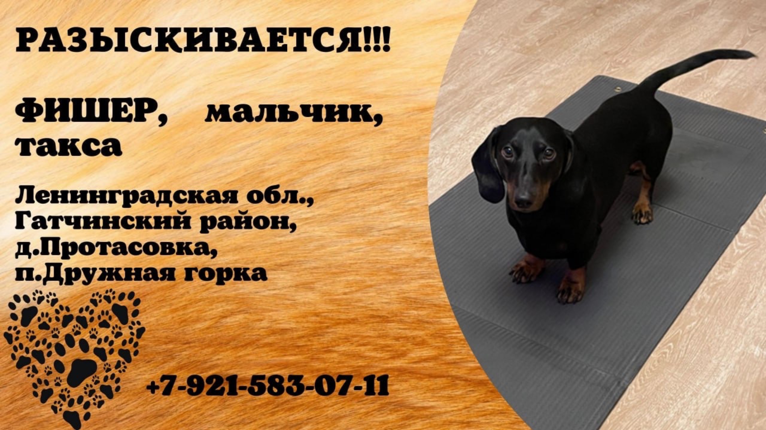 Пропала собака! ФИШЕР, мальчик, такса. Ленинградская обл., Гатчинский р-н, д.Протасовка.