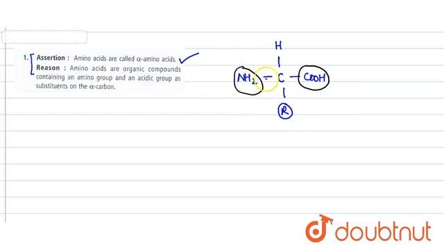 Assertion : Amino acids are called alpha-amino acids. Reason : Amino acids are organic compounds containing an amino group and an acidic group as substituents on the alpha-carbon. Class: 11 Subject: BIOLOGY Chapter: BIOMOLECULES Board:NEET You can ask any doubt from class 6-12, JEE, NEET, Teaching, SSC, Defense and Banking exam on Doubtnut App or You can Whatsapp us at - 8400400400 Link - https://doubtnut.app.link/2um0jr7Joeb Join our courses to improve your performance and Clear your concepts from basic for Class 6-12 School and Competitive exams (JEE/NEET) - https://doubtnut.app.link/POyZDvv5Lyb Contact Us: 👉 Have Any Query? Ask Us. 🤙 Call: 01247158250 💬 WhatsApp: 8400400400 📧 Email: info@doubtnut.com 🌐 Website: https://www.doubtnut.com Welcome to Doubtnut. Doubtnut is World’s Biggest Platform for Video Solutions of Physics, Chemistry, Maths and Biology Doubts with over 5 million+ Video Solutions. Doubtnut is a Q&A App for Maths, Physics, Chemistry and Biology (up to JEE Advanced and NEET Level), Where You Can Ask Unlimited Questions by Clicking a Picture of Doubt on the Doubtnut App and Get Instant Video Solution. Subscribe Our YouTube Channels: ✿ Doubtnut: https://www.youtube.com/channel/UCcv7pspGHmM7AOywuLM1ufA?sub_confirmation=1 ✿ Class 11-12, JEE & NEET (Hindi): https://www.youtube.com/channel/UCiIrZf4bn1i0IOf8YgSMzWA?sub_confirmation=1 ✿ Class 11-12, JEE & NEET (English):: https://www.youtube.com/channel/UCbJ_xe2bMLo9yuBC-i_13MQ?sub_confirmation=1 ✿ Class 6-10 (Hindi): https://www.youtube.com/channel/UCZnV1hkn5A3fdpTOVi60tzg?sub_confirmation=1 ✿ Class 6-10 (English): https://www.youtube.com/channel/UC9KeHSWOEBXIrbWYasHeSyg?sub_confirmation=1 ✿ Doubtnut Govt. Exams: https://www.youtube.com/channel/UCWPaROsU_06MSqiZ_O6zaVg?sub_confirmation=1 Follow Us: 🔔 Facebook: https://www.facebook.com/doubtnut 🔔 Instagram: https://www.instagram.com/doubtnut 🔔 Telegram: https://t.me/DoubtnutOfficial 🔔 Twitter: https://twitter.com/DoubtnutApp 🔔 LinkedIn: https://www.linkedin.com/company/doubtnut Our Telegram Pages: 🔔 Doubtnut Official: https://t.me/DoubtnutOfficial 🔔 Doubtnut IIT JEE: https://t.me/DoubtnutIITJEE 🔔 Doubtnut NEET: https://t.me/Doubtnut_NEET 🔔 Doubtnut CBSE Boards: https://t.me/DoubtnutCBSEBoards 🔔 Doubtnut UP Boards: https://t.me/DoubtnutUPBoards 🔔 Doubtnut Bihar Boards: https://t.me/DoubtnutBiharBoards 🔔 Doubtnut Government Exams: https://t.me/DoubtnutGovernmentExams class 11 class 11 organic chemistry class 11 physics class 11 chemistry class 11 maths class 11 english class 11 economics class 11 biology class 11 statistics class 11 syllabus physics class 11 commerce class 11 syllabus chemistry class 11 ncert economics class 11 ncert class 11 syllabus cbse class 11 syllabus maths cbse class 11 class 11 english grammar class 11 syllabus class 11 science class 11 syllabus english class 11 syllabus 2020-21 cbse class 11 maths cbse class 11 physics cbse class 11 books cbse class 11 english cbse class 11 chemistry cbse class 11 biology cbse class 11 accountancy cbse class 11 commerce cbse class 11 science class 11 syllabus biology cbse class 11 statistics class 11 syllabus ncert class 11 syllabus of english class 11 syllabus science class 11 syllabus commerce