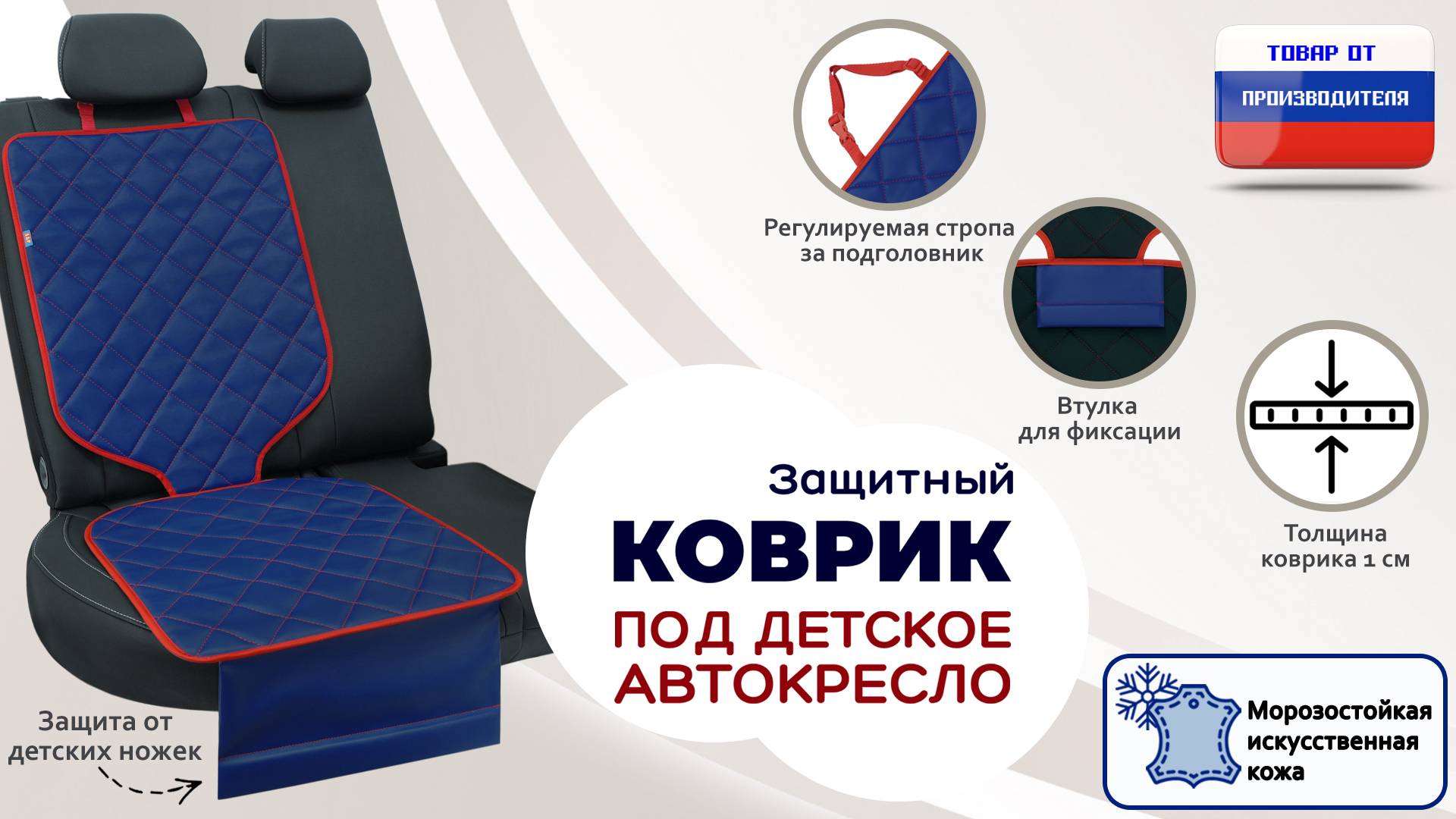 Защитный коврик под кресло или бустер. Иск. кожа. Ромб. Цвет: синий с красным. Промо-ролик.