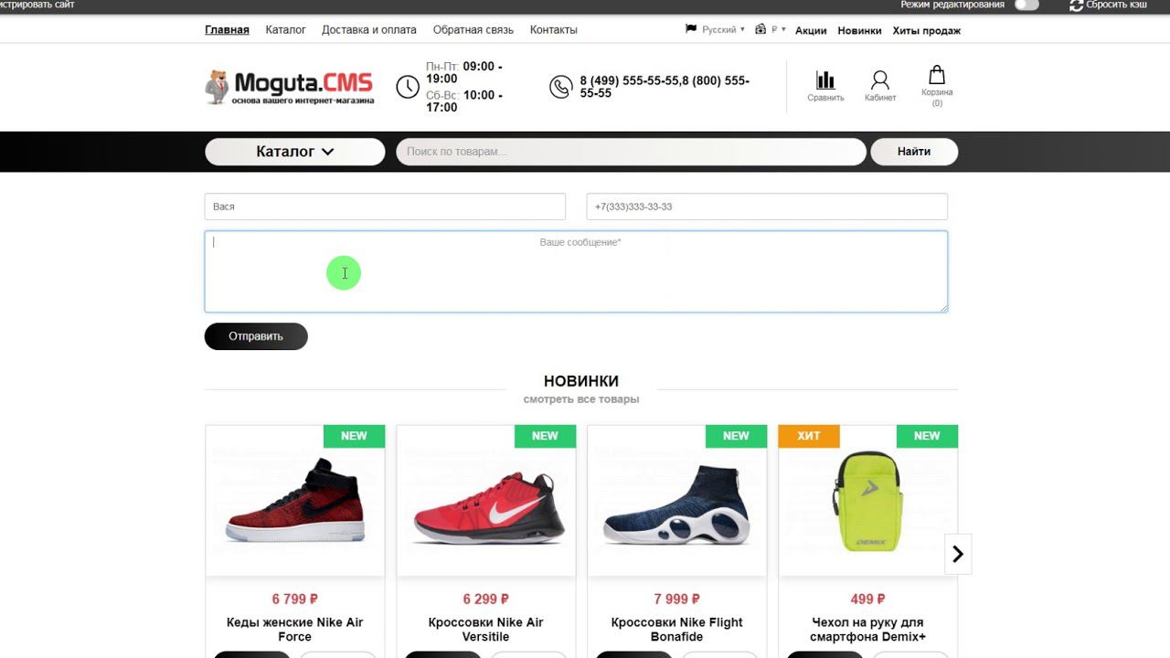 Форма обратной связи с телефоном для Могута