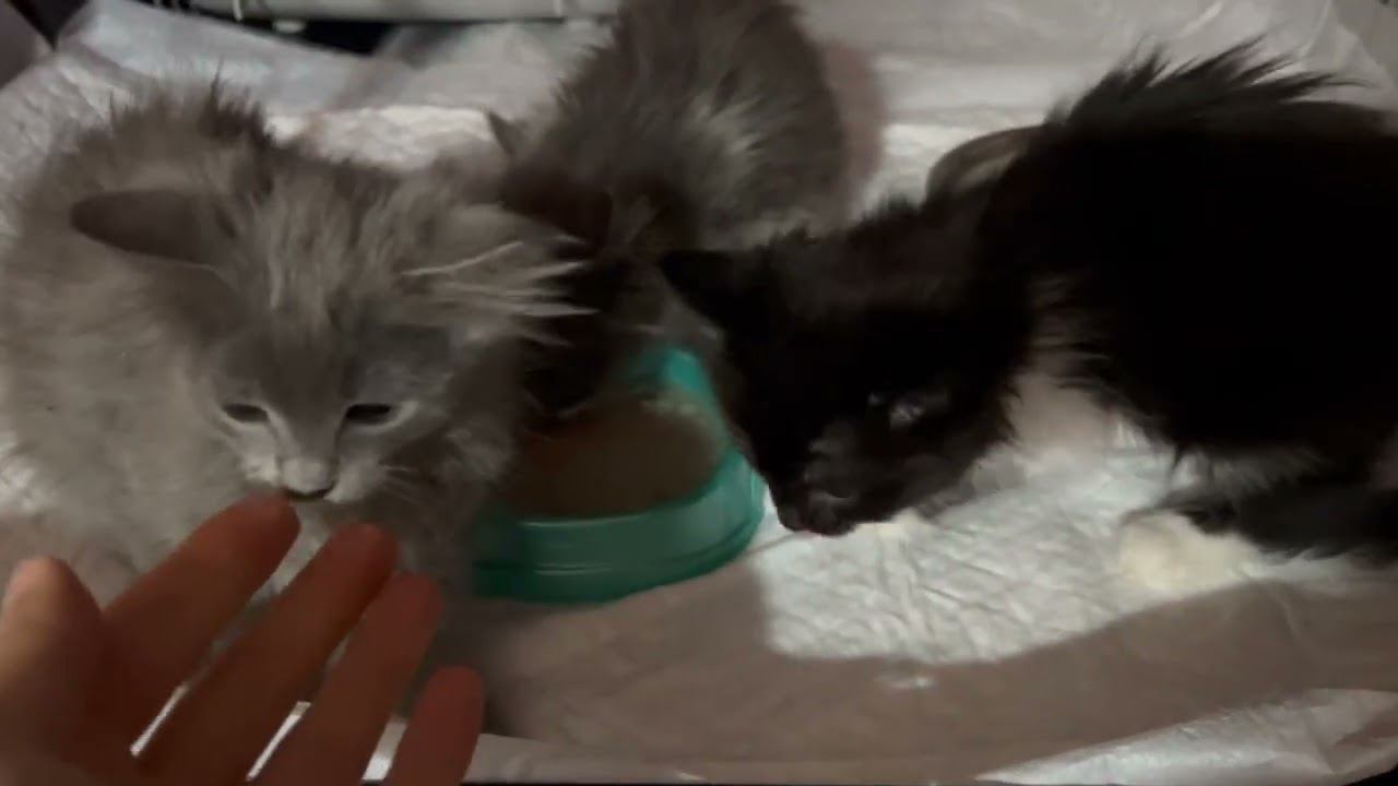 Кошечки едят с большим аппетитом