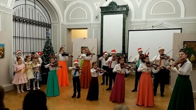 Образцовый ансамбль скрипачей "Весёлый смычок" ДШИ №1 г. Ельца, Л. Бекман "В лесу родилась ёлочка" Конц. Наумов А.В., преп. Прокофьева Ю.Г. Выступление на Новогоднем школьном концерте в Музее Воинской Славы 28.12.2023 г.