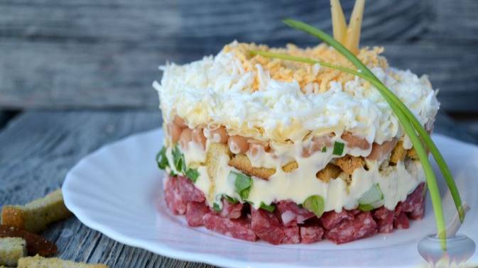 Оригинальный и быстрый. САЛАТ С КИРИЕШКАМИ