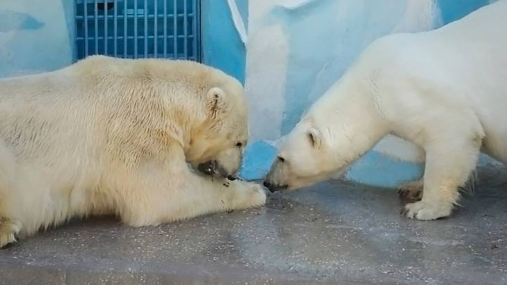 Белую медведицу Герду подвел строптивый характер. Завтрак пришлось отвоевывать!