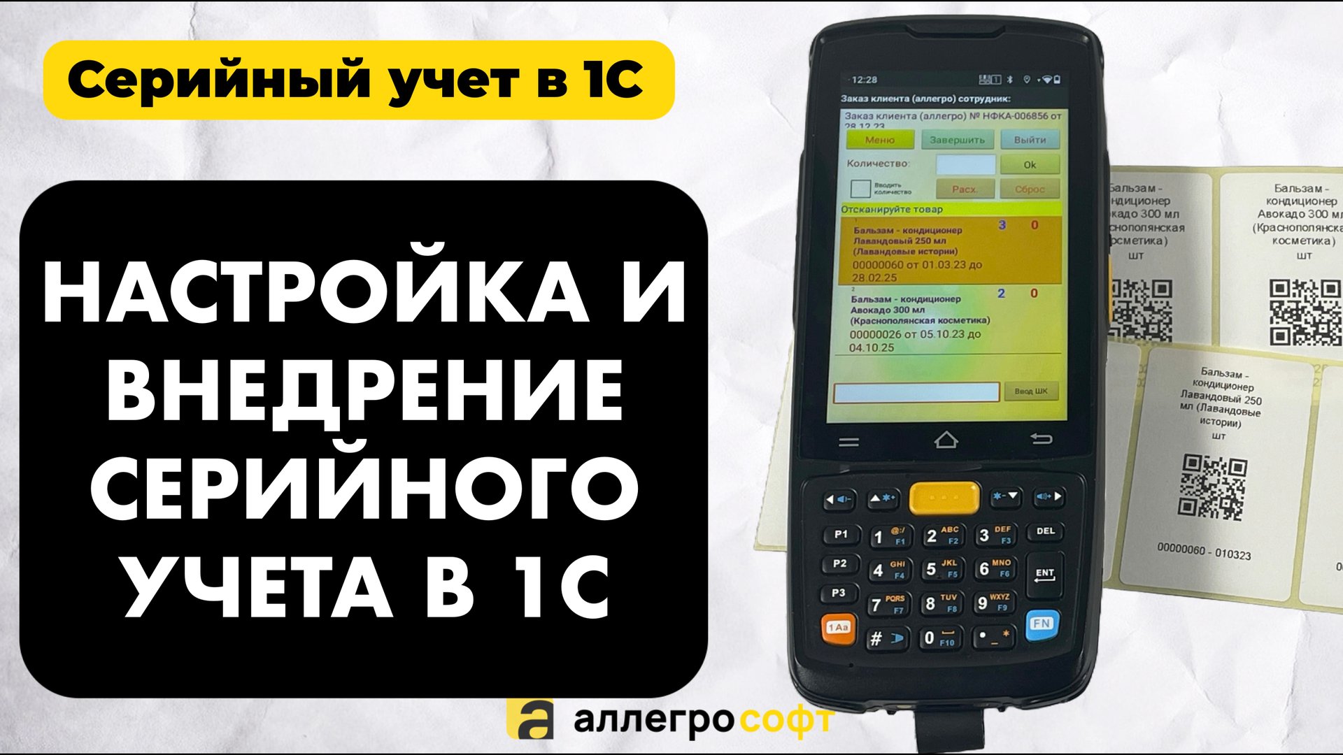 Серийный и партионный учет на стороне учетной системы позволяет: - контролировать сроки годности товара при приемке, отгрузке, перемещениях и инвентаризациях; - организовать и оптимизировать хранение в различных единицах с переменным объёмом (бухты, рулоны, и т.д.); - работать с уникальными серийными номерами продукции; - рассчитывать себестоимость в разрезе данных параметров. Рассмотрен поэтапный план запуска и внедрения учета по сериям на базе 1С Комплексная автоматизация. Формирование этикетки в 1С для идентификации уникального товара. Работа на ТСД с документами для контроля отгружаемой или перемещаемой продукции с учетом срока годности. AllegroSoft - https://allegrosoft.ru/ канал об автоматизации бизнеса ★Автоматизация магазина и склада, работа с маркировкой. ★Загрузка данных на ТСД из 1с. ★Ускорение комплектации и сбора заказов на 50%. ★Ускорение инвентаризации склада на 70%. ★Возможность автоматизации “ручных” процессов на складе/магазине. Заходите, смотрите и подписывайтесь на канал! Мы в интернете: ➧ Сайт - https://allegrosoft.ru/ ➧ Landing Page - https://sznak.ru/ ➧ Почта - info@allegrosoft.ru ➧ Телефон - +7 (499) 213-02-73 Наш канал: https://www.youtube.com/@allegrosoft_company